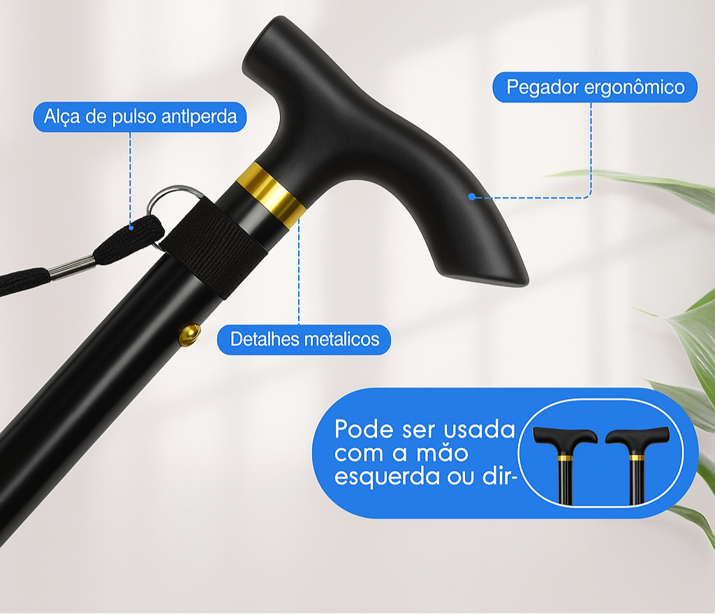A Bengala CompactCare foi criada especialmente para oferecer confiança, estabilidade e autonomia para quem mais precisa: idosos, pessoas em reabilitação ou com mobilidade reduzida.
